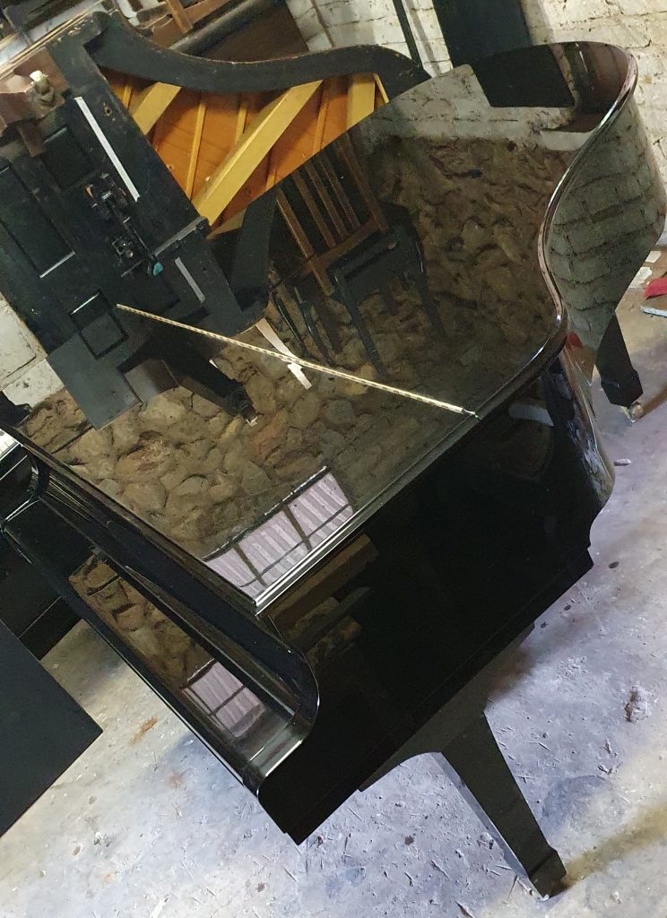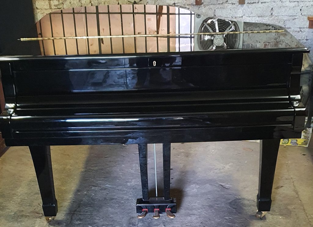 The photos are taken in our polishing room as the piano had just arrived and we like to do a thorough clean up. This is a superb piano of a very nice size, in original condition and very lightly used. It would suit any serious musician or institution. This sort of piano is what everyone is looking for and they are very hard to come by.