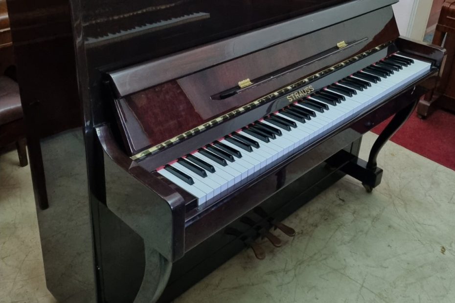 Serial number 2568. Beautifully cased in dark high gloss finished mahogany, appearing almost black in… Read More »Strauss Upright Piano (036)