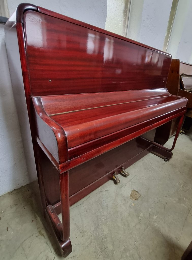 Serial number: 66829. This piano was manufactured in the 1950’s by the Kemble factory in London. The piano retains a very smart look in previously re-polished true mahogany stain.