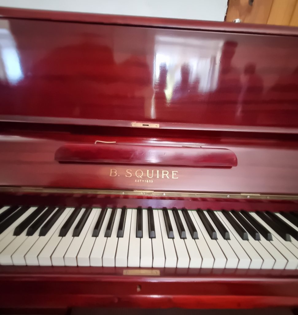 The JAE 120 B. Squire Upright Pianoforte with matching stool is currently hired out.