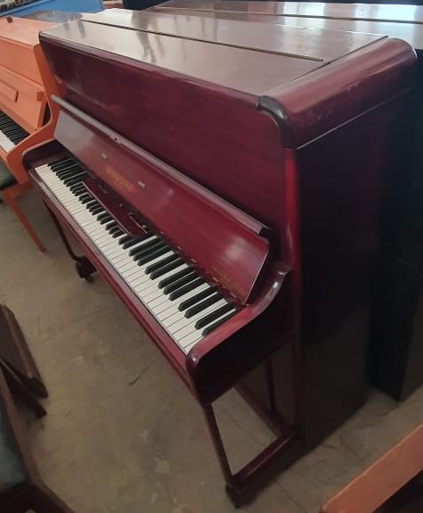 The tone is lively with a good resonance. It has 85 keys, with a medium to firmer touch, and 2 pedals. The dimensions are conveniently small: a height of 103,5 cm; a width of 134 cm and a depth of 56 cm.