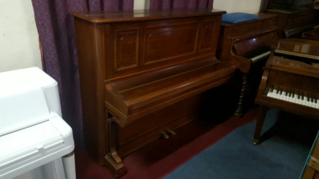 This one has a mahogany casing (Eshelby Pianos repolished it October 2017) and is in a very original state, with ivory keys and so on.