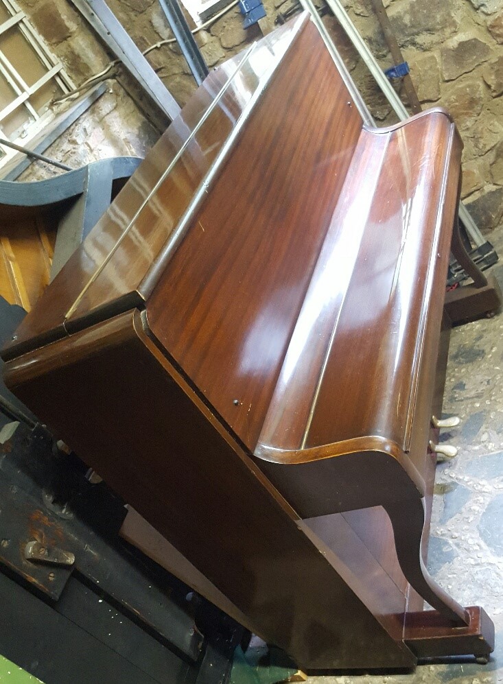 Serial number: 10756/70756. This piano was manufactured in London. It’s a gorgeous little piano with a mahogany casing. The dimensions of this piano are a height of 111 cm, a width of 135.5 cm and a depth of 56 cm.