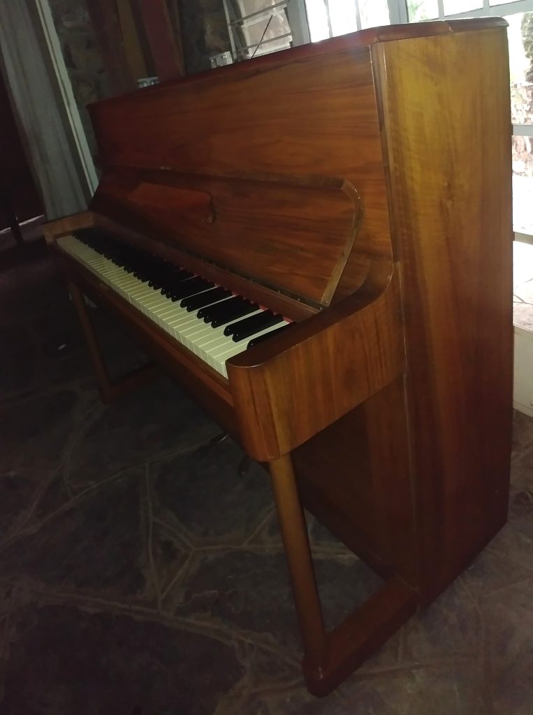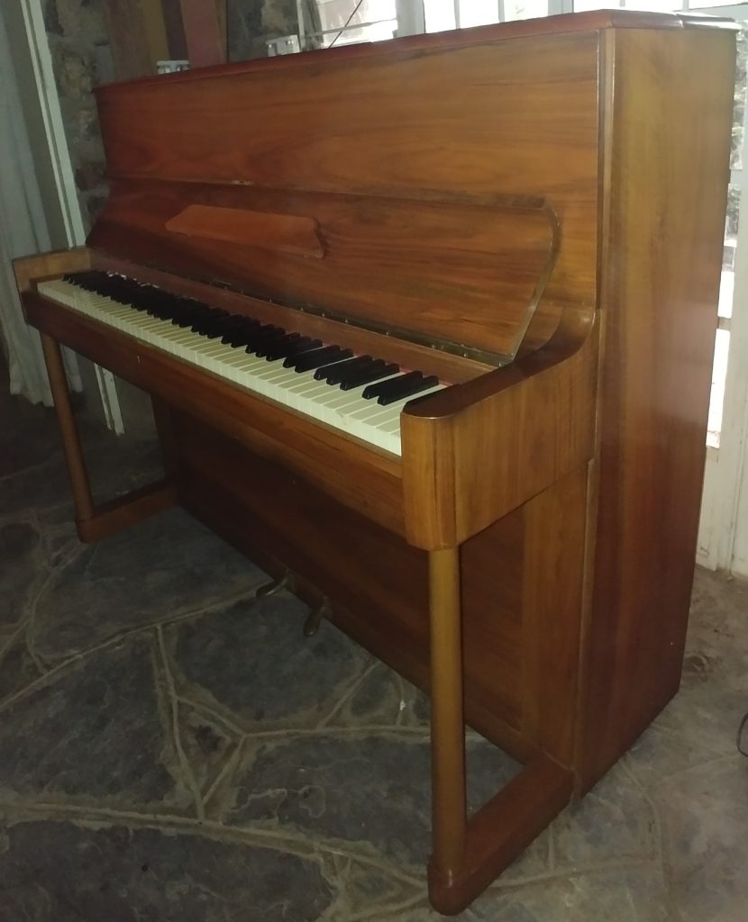 Serial number 80240. This piano was manufactured in London and has a walnut casing. It is in lovely condition – it was clearly a well-loved and cared for piano when we purchased it. Danemann is one of our favourite makes of pianos. They suit most pianists as they are very reliable and are attractive too.