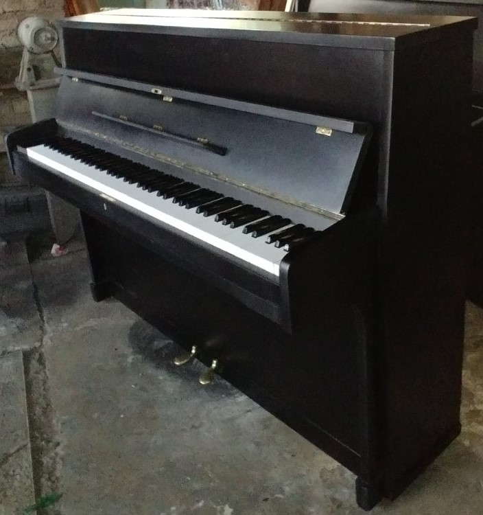 The piano has 88 keys, with a medium to heavier touch, and 2 pedals. The piano’s dimensions are height of 110 cm, a width of 144 cm and depth of 55.5 cm.