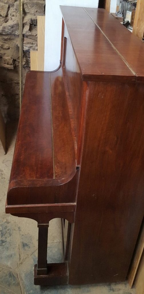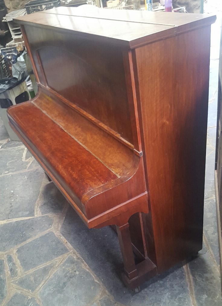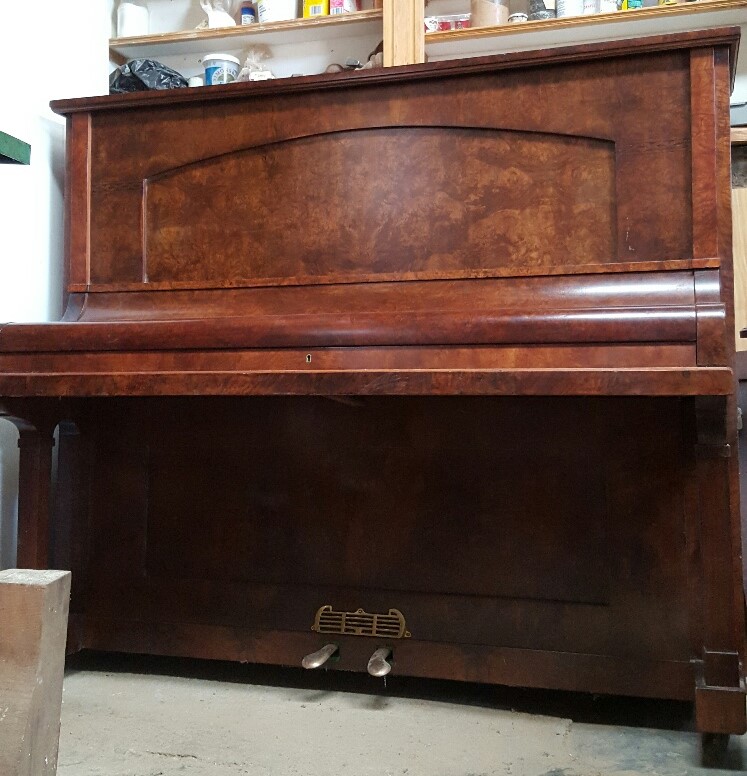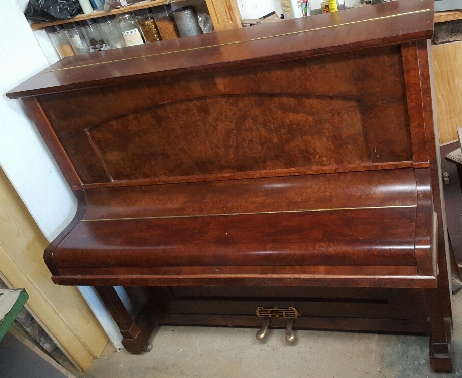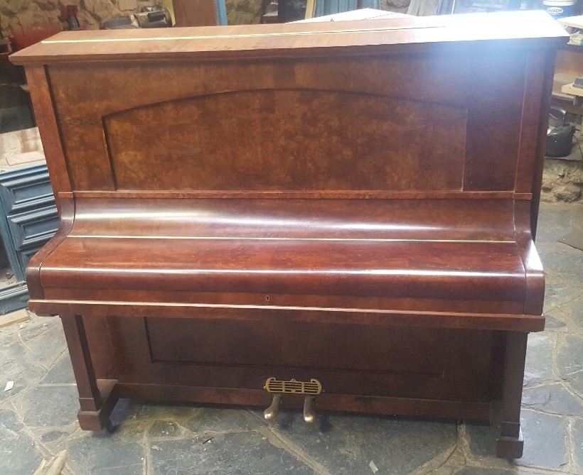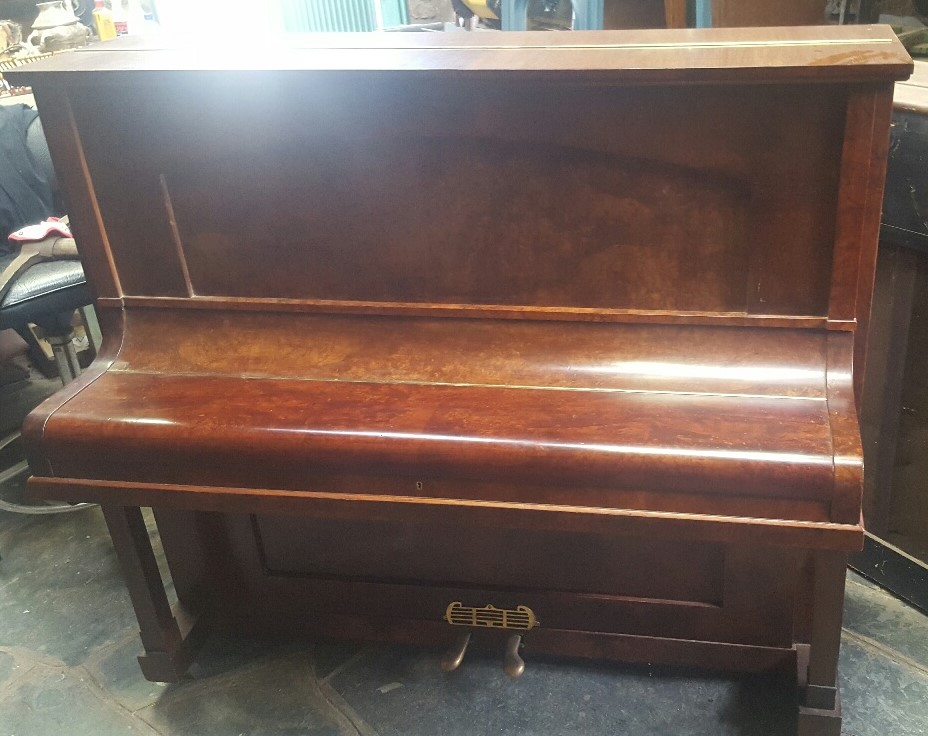 Serial number: 23481. This piano was manufactured in Germany between the years of 1915 to 1920, likely 1917. It has a burr walnut casing, finished in a waxed-look, which is a very attractive, low-sheen finish.