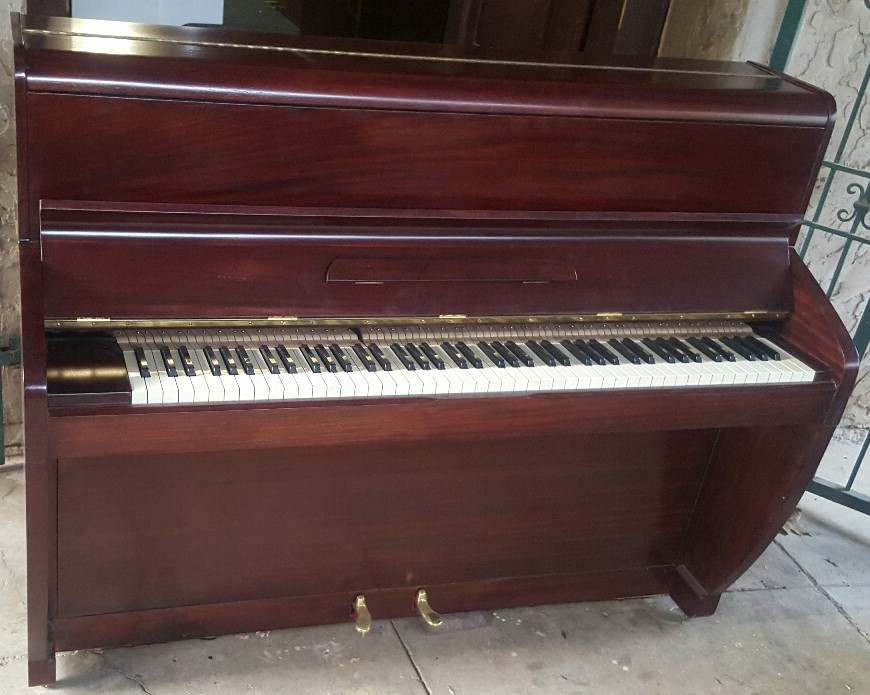 It has a “Pregnant Lady” design of structure and a mahogany casing that has just been re-polished (June 2017). With a good-quality inner build (one of the reasons why Challen pianos are so popular), fresh casing, crisp, brighter tone and a medium to heavy touch, this is a very good choice for a piano.