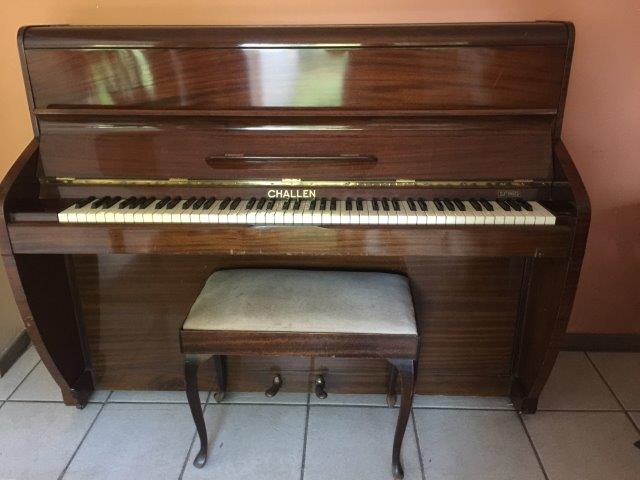 The DE 373 Challen Upright Pianoforte with stool is currently hired out.