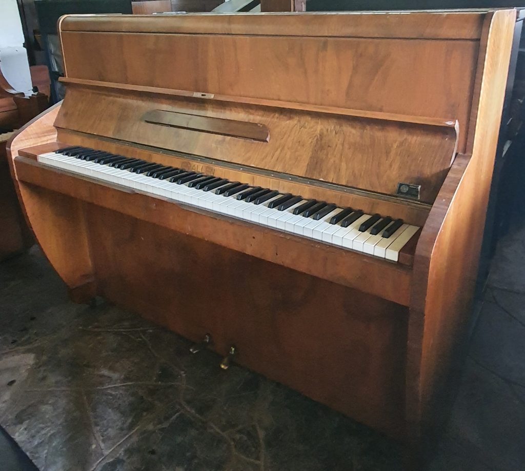 Serial number: 75200. This piano was manufactured in London. It’s unusual to see this design in a walnut case. The Art Deco and compact feel make this model very popular.
