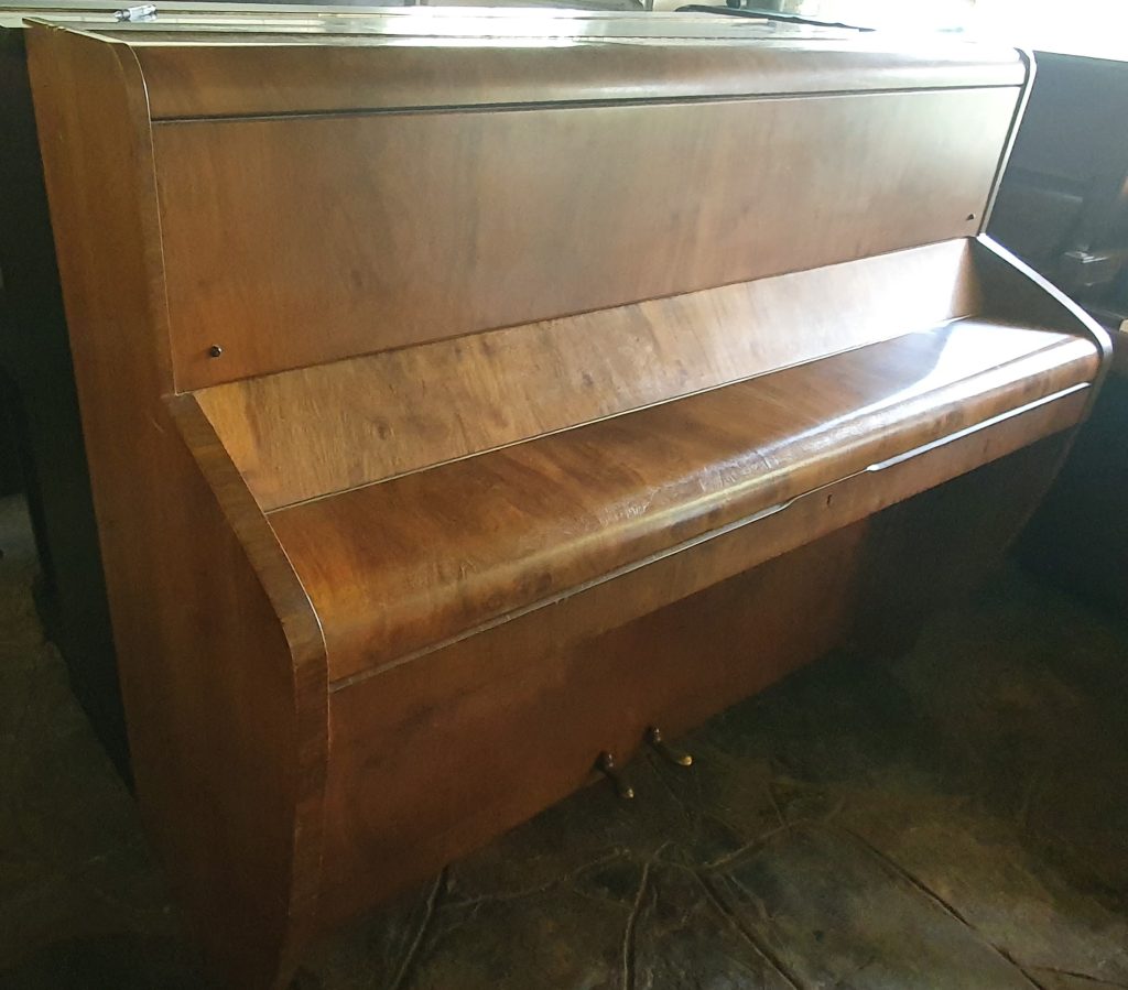 The piano has a wonderful warmth of tone not usually associated with English pianos. It is really nice! It has 88 keys, with a medium touch, and 2 pedals. The dimensions of this piano are a height of 118 cm, a width of 145.5 cm and a depth of 55 cm.