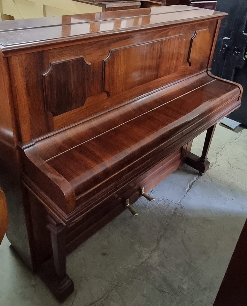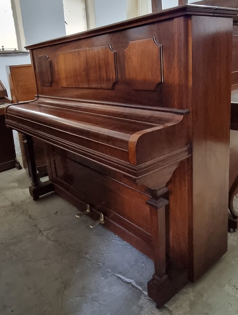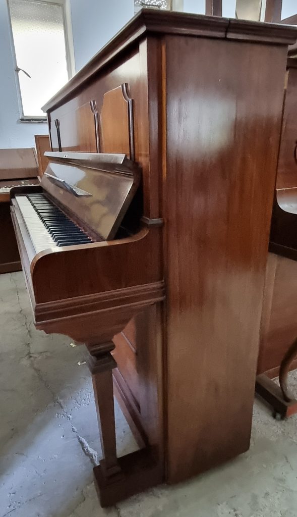 The tone is warm, but extremely clear. The piano has 85 keys – with a medium touch – and 2 pedals. It retains its ivory keys. The dimensions are a height of 119,5 cm, a width of 145 cm and a depth of 58 cm.