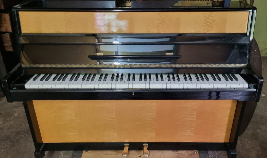 The tone is typically German in being rounded and rich. It has 88 keys – with a medium touch weight – and two pedals. The dimensions are a height of 107 cm, a width of 143 cm and a depth of 55 cm.
