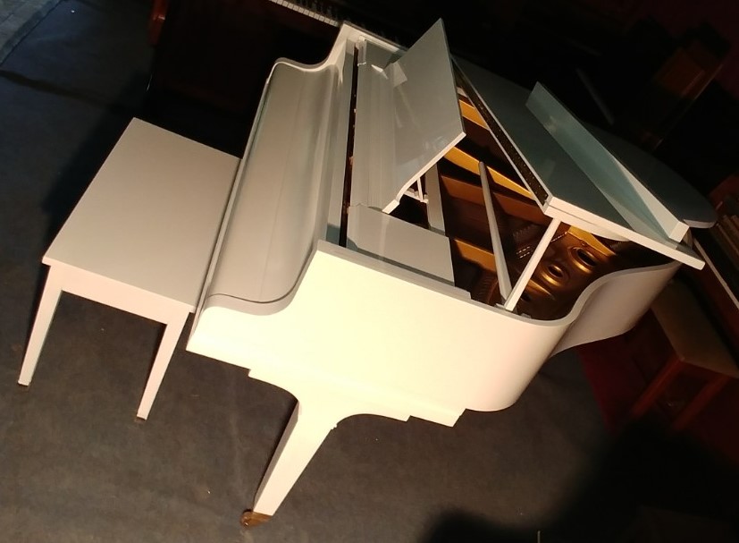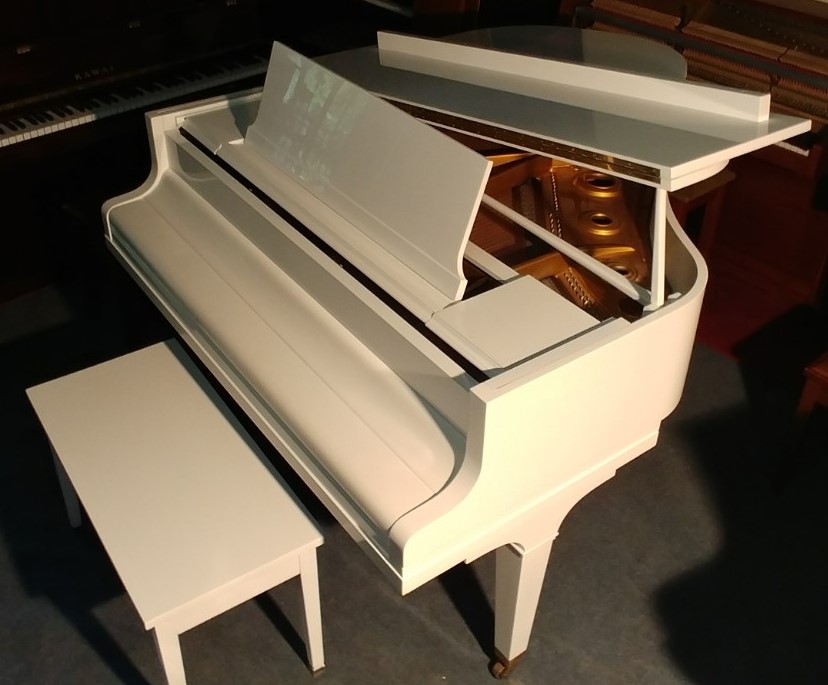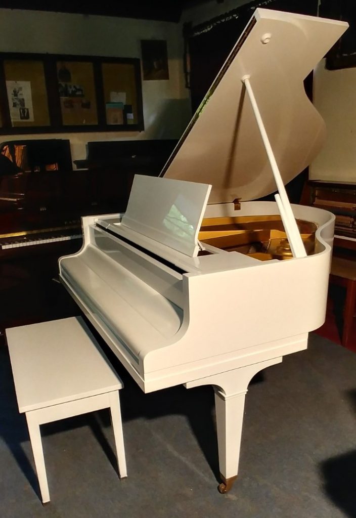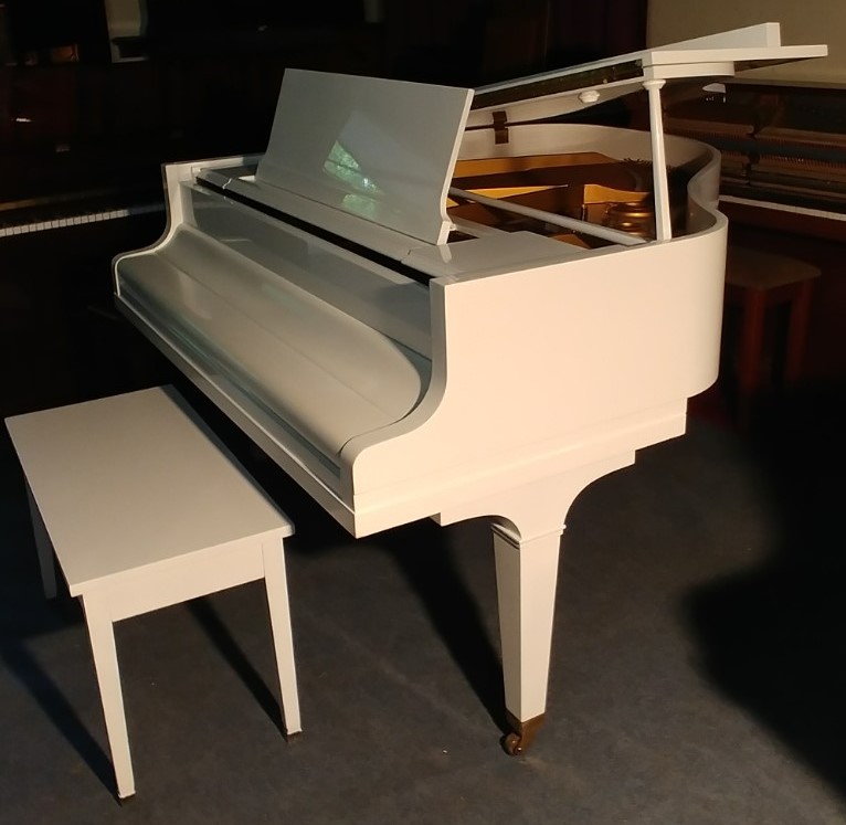 This piano had a walnut casing and Eshelby Pianos repolished it to a high gloss white finish (February 2018). It is a lovely example of this well-known make. These earlier models have a richness of tone that has great appeal. It is an exceptional piano: well-priced piano to suit a wide range of pianists and good enough for professional use.