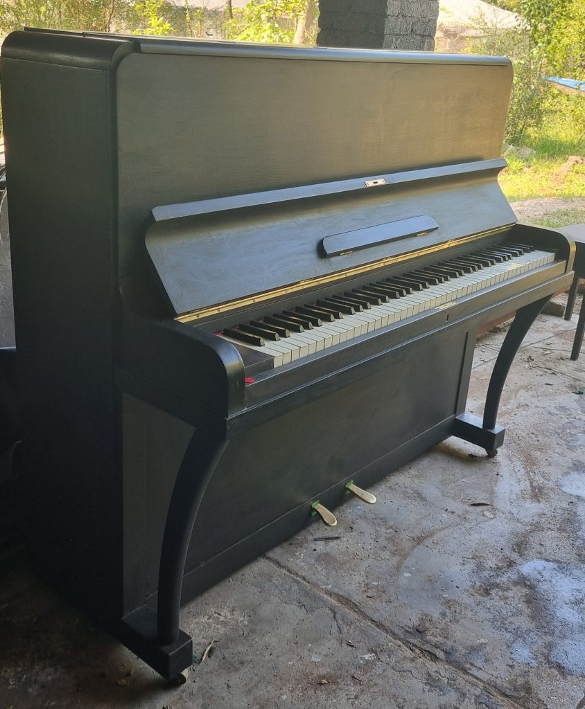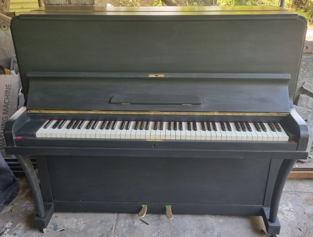 Surprisingly for an English piano, the tone is a lovely warm and mellow one. It has 85 keys – with a medium to firmer, smooth touch – and 2 pedals. The dimensions are a height of 123 cm, a width of 142 cm and a depth of 61 cm.