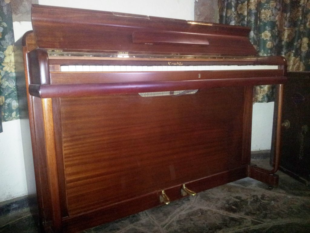 The JAE 030 Kemble upright pianoforte and stool is currently hired out.