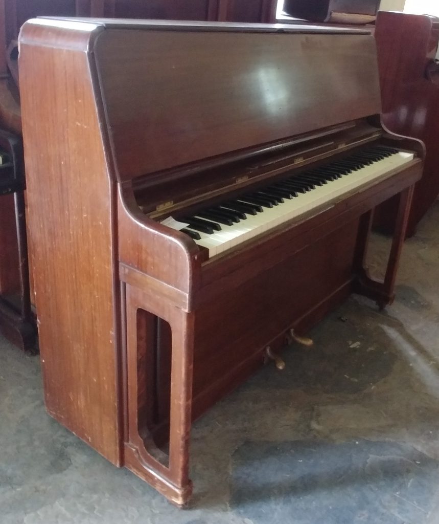 The DE 508 Kemble upright pianoforte and matching stool is currently hired out.