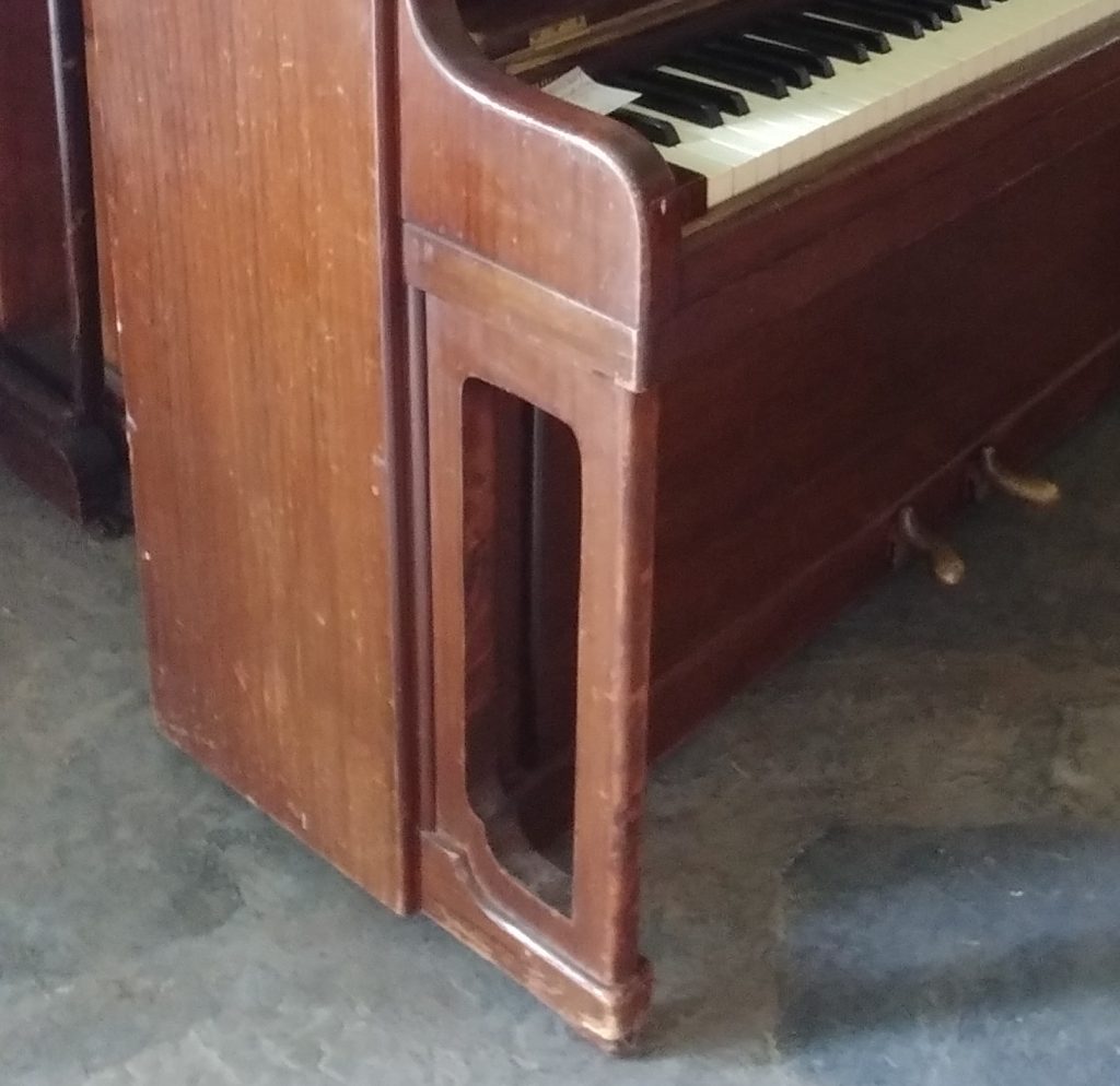 This is how the piano looked before we spraypainted and repolished it. What a contrast!