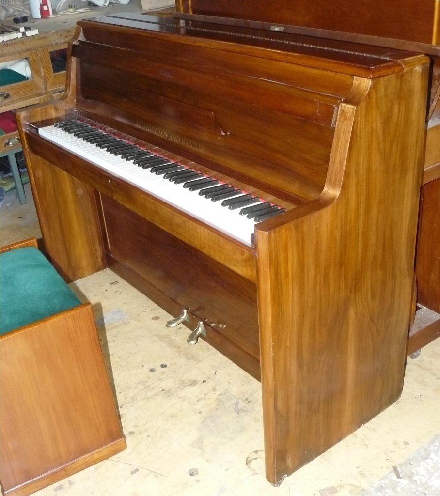 This piano was manufactured in London, England in the 1970’s. Repolished before we purchased the piano, it was relabelled with a spelling error: ‘Monnington’ rather than Monington.
