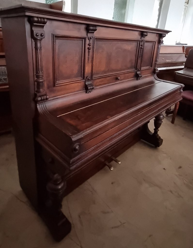 Manufactured in the late 1800’s to early 1900’s, this premier quality piano will certainly appeal to someone who likes antiques. The incredibly high-quality hand-built manufacture of pianos like this always astonishes. It has a beautifully ornate and intricate walnut casing.