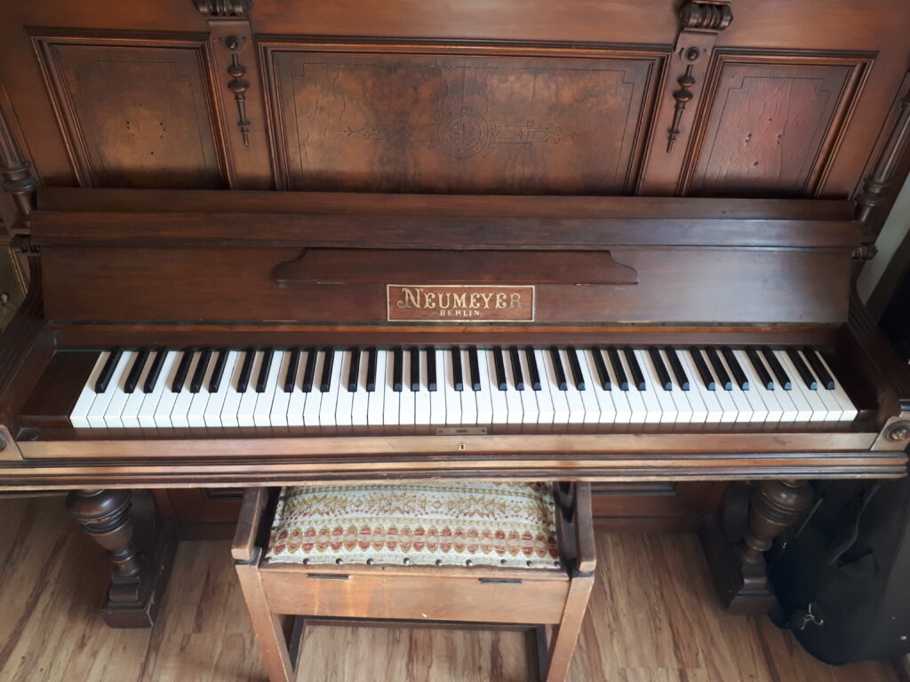 The DE 725 Neumeyer Upright Pianoforte with stool is currently hired out.