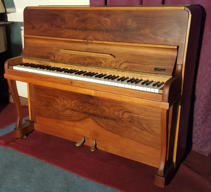 The JAE 092 William Squire Upright Pianoforte with stool is currently hired out.