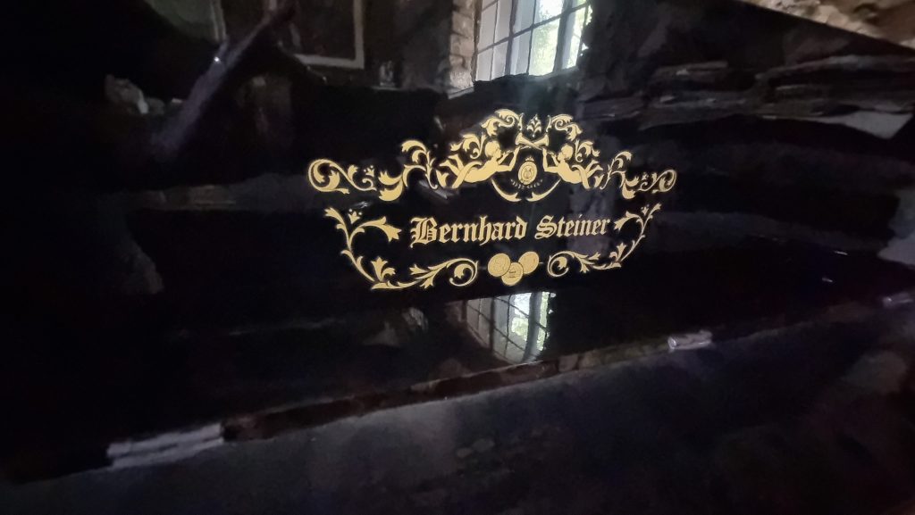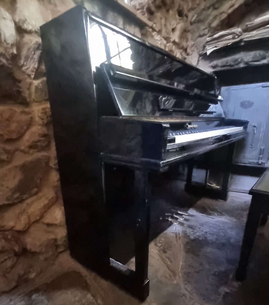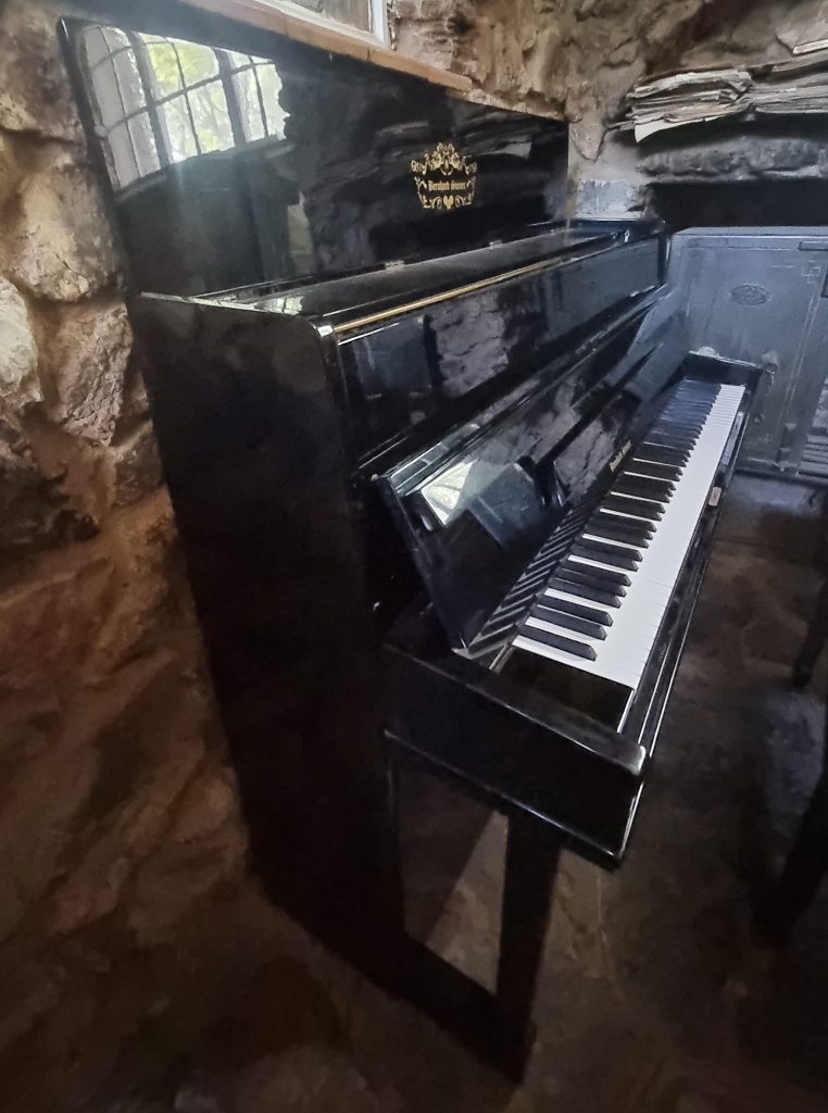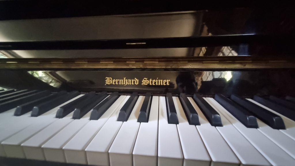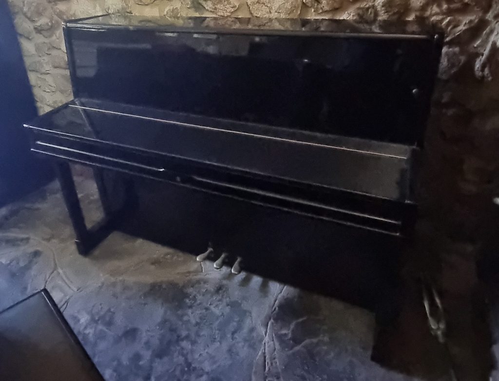The tone is rich and full, with an especially pleasant roundness. The tone belies the fact that this is not a very tall piano. The piano has 88 keys – with a medium to heavier touch weight – and 3 pedals. The centre pedal operates a celeste-felt rail. Its dimensions are a height of 110 cm, a width of 144 cm ad a depth of 56.5 cm.