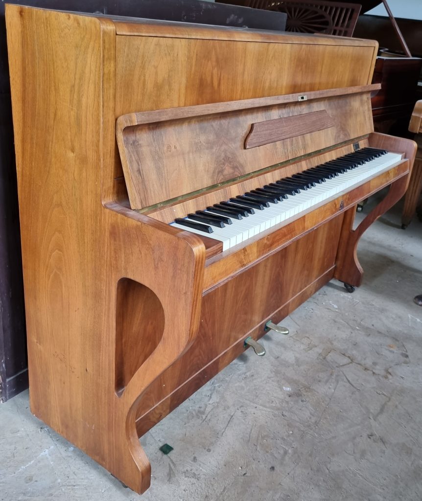 The piano has a lively, but mellower tone. It has 85 keys – with a medium to lighter touch – and 2 pedals. This piano’s dimensions are height of 108 cm, width of 140.5 cm and depth of 51.5 cm.