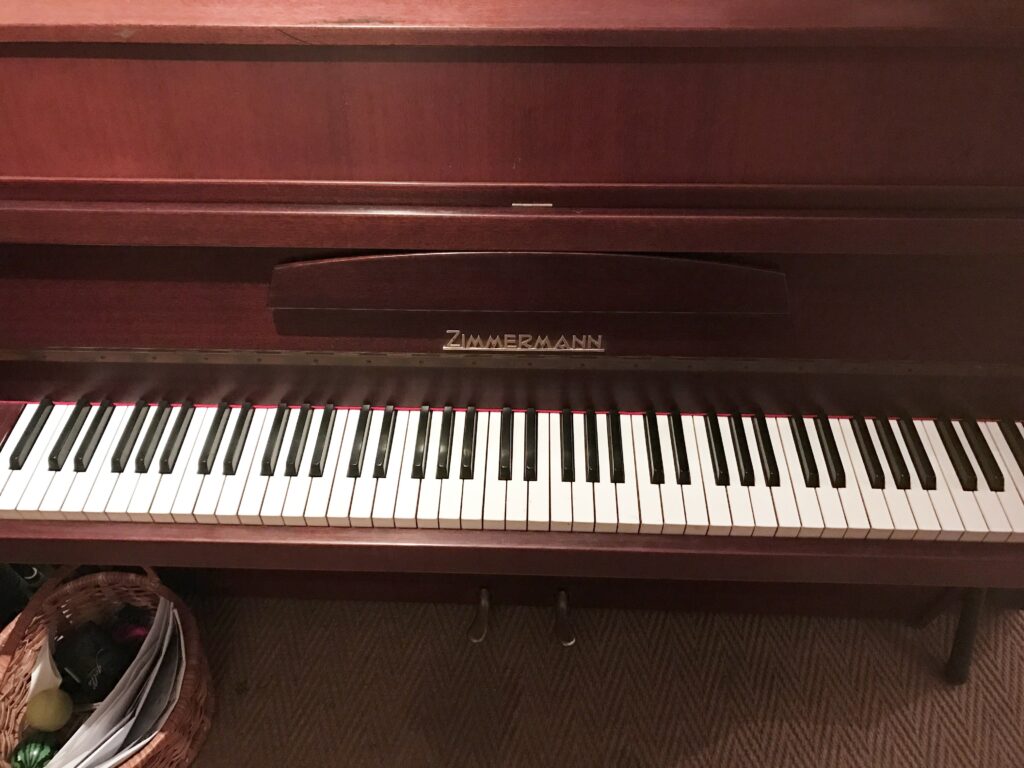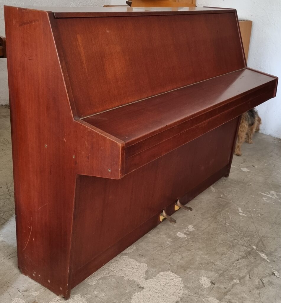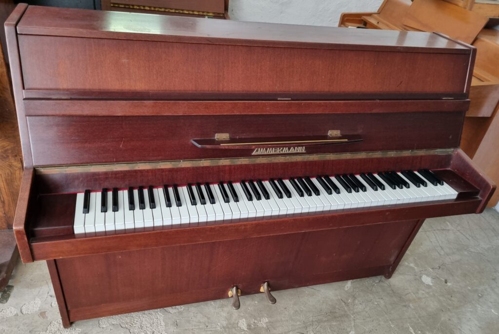 Serial number: 1105V. This piano was manufactured in Liepzig, Germany in about 1963. Zimmermann is a very good quality piano at the top of our intermediate range. This one has its original mahogany finish.