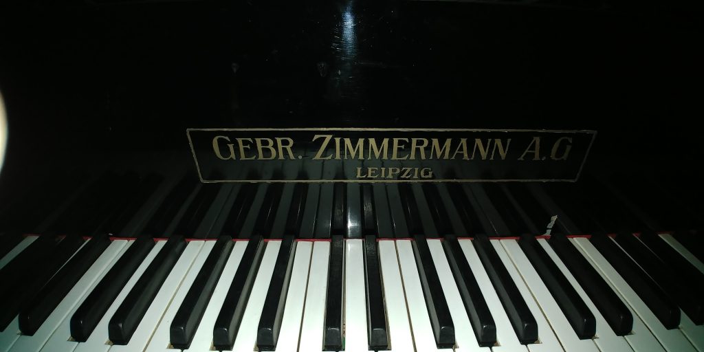 The piano was manufactured in Liepzig, Germany in the 1920’s. Although the ebony casing shows some wear, it is a fine-quality, robust instrument.