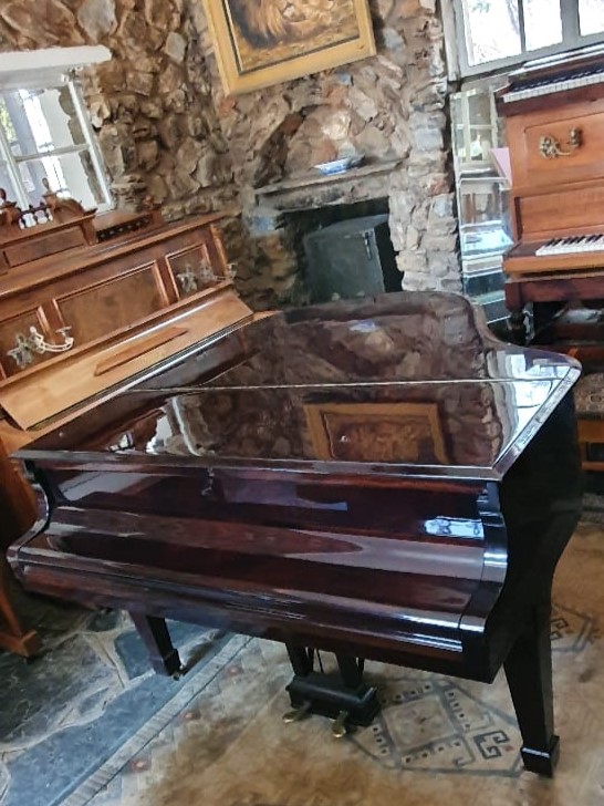 Serial number: 295365. Manufactured in 1939, in Germany, this Steinway grand’s mahogany casing literally shimmers and shines the sheer quality one knows to expect from such an elite piano brand. It is a Model S, the baby grand of Steinway and Sons, with a width of approximately 1.5 m and a depth of approximately 1.6 m.