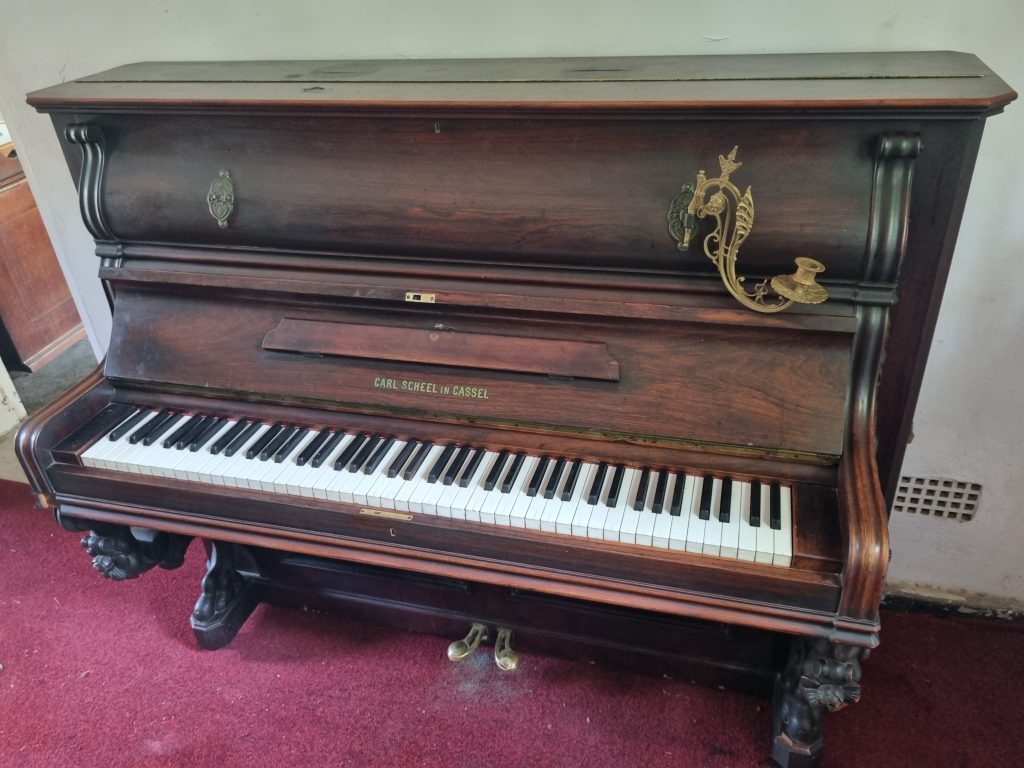 A Carl Scheel in Cassel… gosh, this certainly is a make that we are eager to elaborate about and will do so when time allows. In brief, this is only the second Scheel piano Deon has seen, and this is what he has to say about these pianos:
