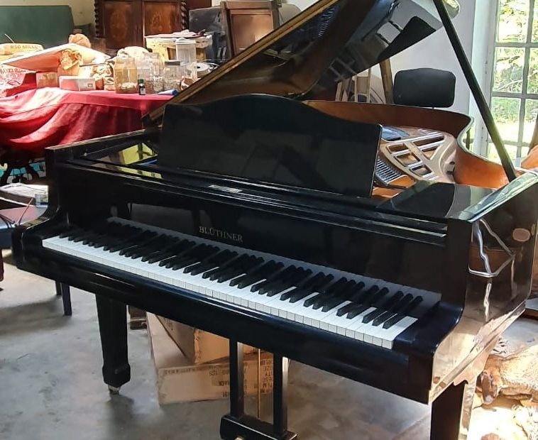 Serial number: 120006. This piano was produced in Liepzig, Germany. It has flame-mahogany casing. Our… Read More »Blüthner Grand Piano (938)